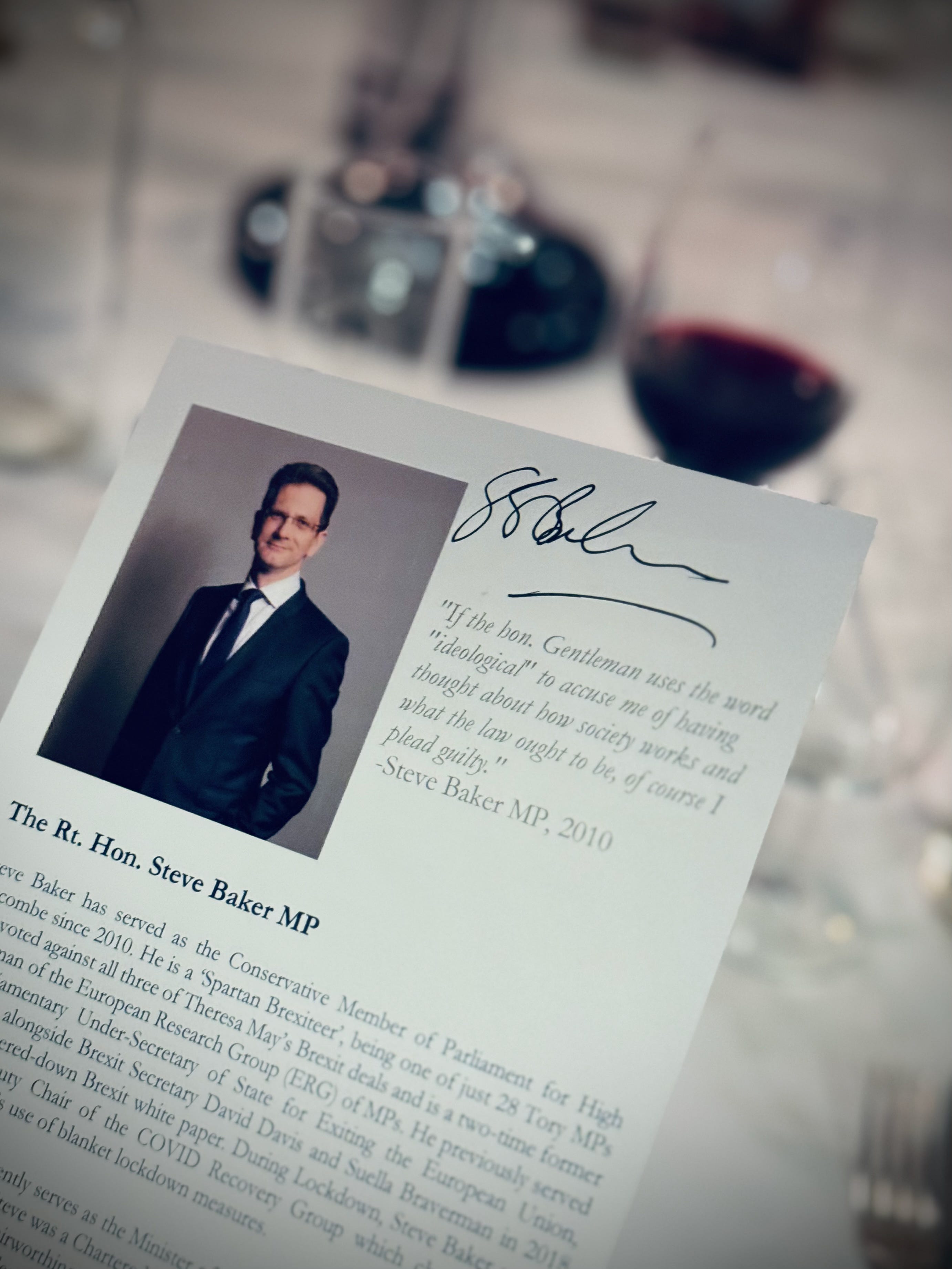 Shortly before the last election, I was honoured to speak in defence of freedom at a dinner for young professionals in London when I found the menu included the 2010 quote above, which of course I had forgotten all about.