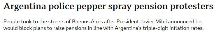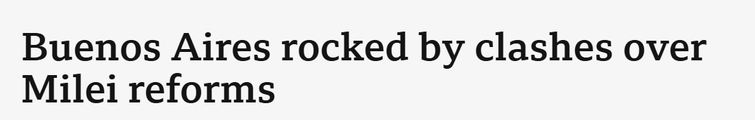 Similarly, as Milei implemented his radical reforms, the BBC and Sky News enjoyed reporting on the street protests that were organised in response to them14 - often failing to note that these kinds of street protests were a regularity in Argentina before Milei came to power.